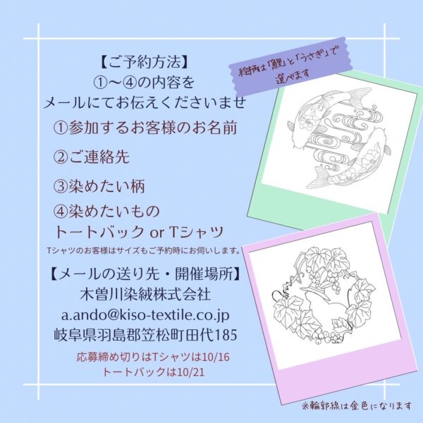 3手描き友禅染めワークショップ 10月25日(土)開催