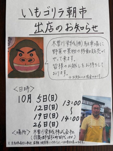 4いもゴリラ朝市出店! 10月26日(日)開催