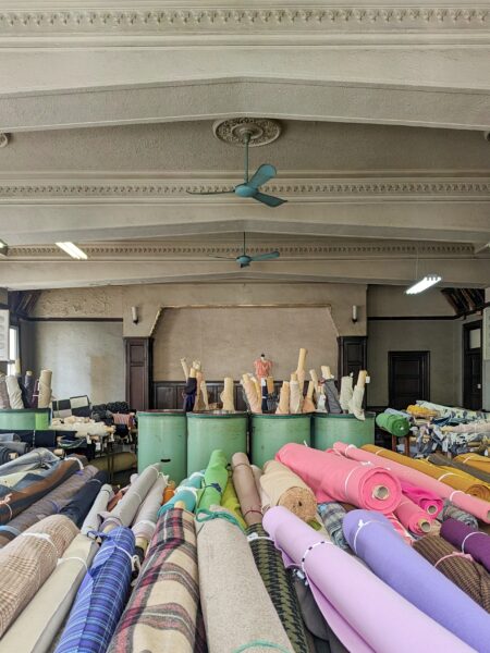 せんいのまちで、せんいのビル。築91年の繊維組合のレトロビルを再活用。尾州地域70社の生地や糸を見て触れて買えるショップをはじめとする10のテナントの集合体。
